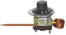 SAIEGO Capillary Thermostats are designed for accurate and reliable temperature control for Domestic appliances, Commercial and Industrial Heating Equipments, The assembly of these Thermostats consist of capillary tube, sensing bulb & Diaphragm(Phial) filled with Liquid, fixed plated M.S./ thermoset housing and Ceramic/Thermoset switch base. A ‘ABS’ plastic Knob & a Dial / Bezel with clear scale markings calibrated in °C is provided to set the desired temperature. |